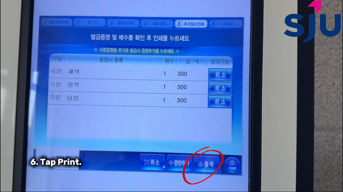 ⑤ elect the certificate you need (Enrollment / Transcript)